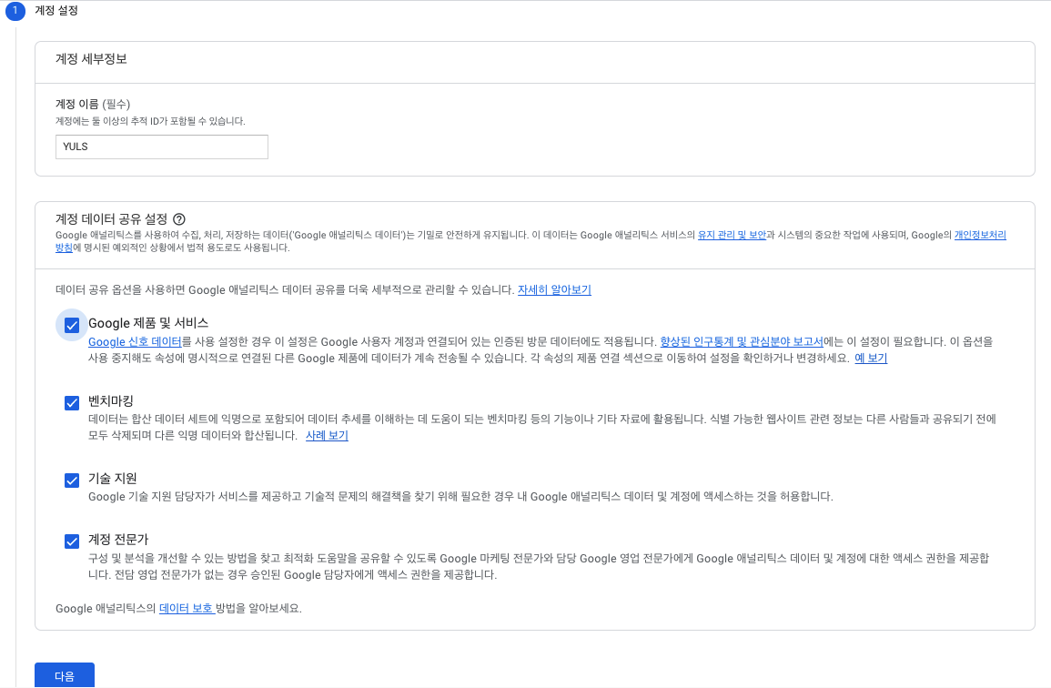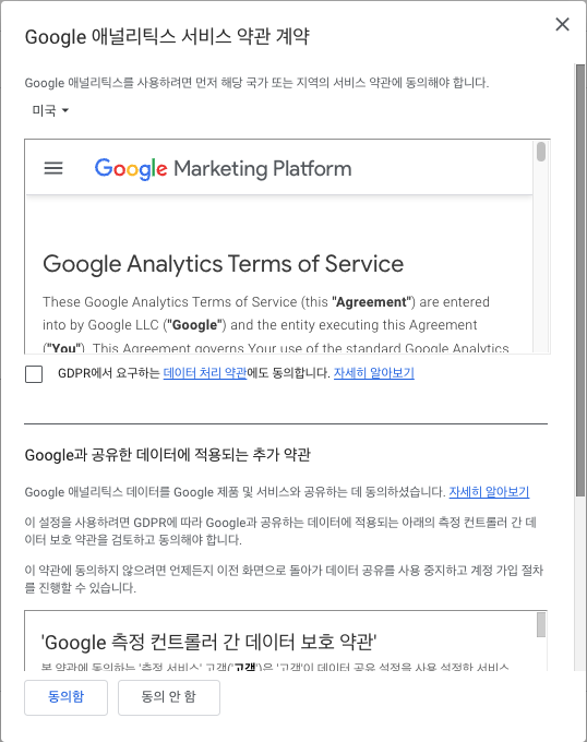 대한민국으로 선택한 후 동의함을 눌르면 계정생성이 완료된다.