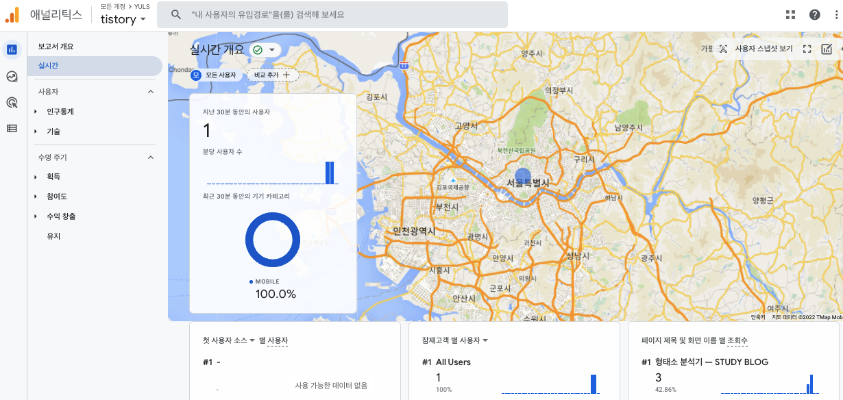위의 작업들을 마치면 Google Analytics와 연동이 되며 데이터를 추적할 수 있다.