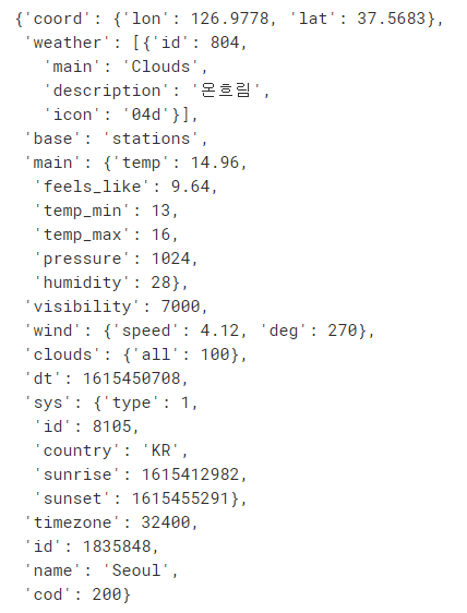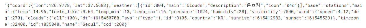 print("날씨는 ",data["weather"][0]["description"],"입니다.")