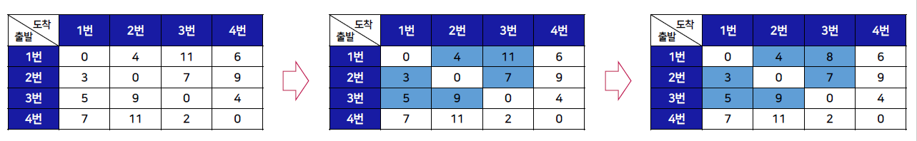 # 점화식에 따라 플로이드 워셜 알고리즘을 수행