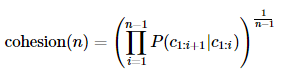 $cohension(5) = \sqrt[4]{P(안녕|안)\cdot P(안녕하|안녕)\cdot P(안녕하세|안녕하)\cdot P(안녕하세요|안녕하세)}$