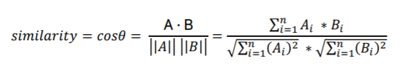 코사인 값은 -1 ~ 1 사이의 값을 가지며, 두 벡터의 방향이 완전히 동일한 경우에는 1, 반대 방향인 경우에는 -1, 두 벡터가 서로 직각을 이루면 0의 값을 가진다. 즉, 두 벡터의 방향이 같아질 수록 유사하다 볼 수 있다.