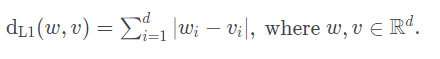 - L1 Norm은 두 개의 벡터를 빼고, 절대값을 취한 뒤, 합한 것이다.