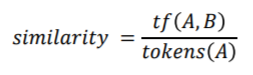 𝑡𝑓 𝑡𝑒𝑟𝑚 𝑓𝑟𝑒𝑞𝑢𝑒𝑛𝑐𝑦 는 두 문장 A와 B에서 동일한 토큰의 출현 빈도를 뜻하며, 𝑡𝑜𝑘𝑒𝑛𝑠는 해당 문장에서 전체 토큰 수를 의미한다.
