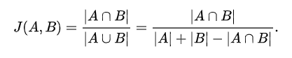 - 유사도를 측정하는 방법은 두 집합의 교집합인 공통된 단어의 개수를 두 집합의 합집합, 전체 단어의 갯수로 나눈다.