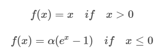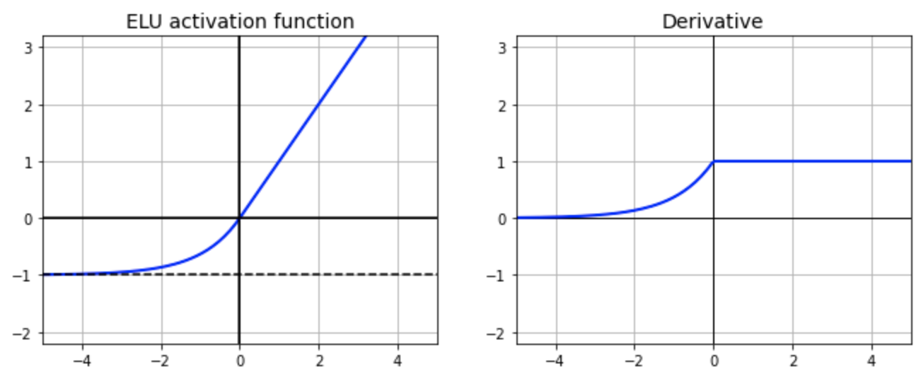 하이퍼파라미터인 $\alpha $는 음수일 때 ELU가 수렴할 값을 정의하며 보통 1로 설정한다.