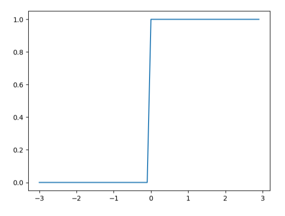 입력이 양수일때는 1(보낸다)을 음수일때는 0(보내지 않는다)의 신호를 보내주는 이진적인(Binary) 함수이다.