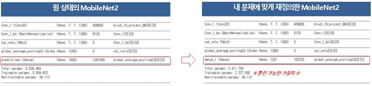 # 예측을 위한 레이어 재정의 ( 예측 범주 1000개(이전 레이어의 유닛수) -> 120개 )