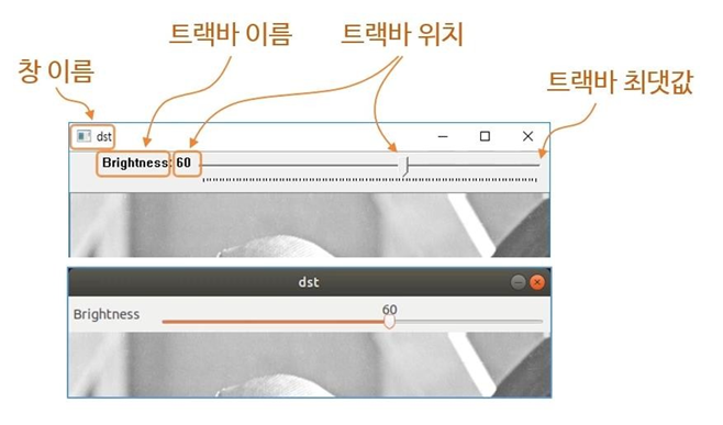 ✔ 트랙바 생성 함수 - cv2.createTrackbar