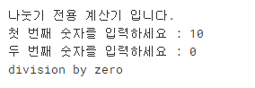 파이썬에서 print(10/0)이라고 코딩을 해버리면, 10 나누기 0 값을 출력한다는 의미인데,
