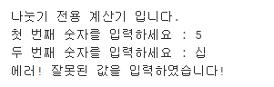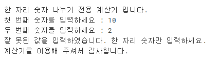 print("한 자리 숫자 나누기 전용 계산기 입니다.")