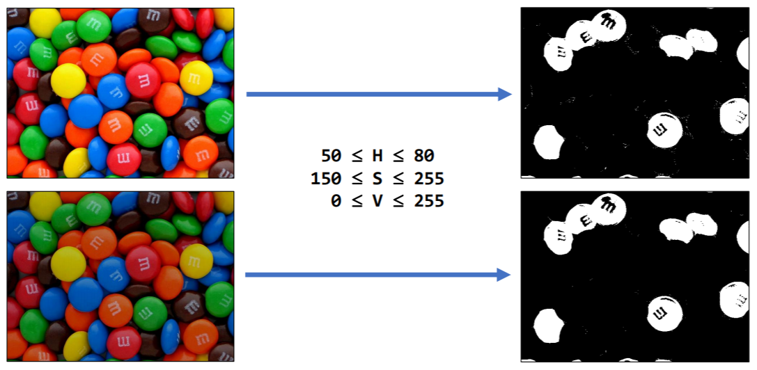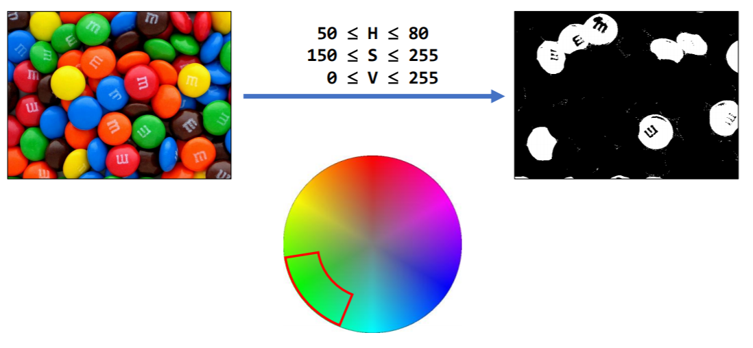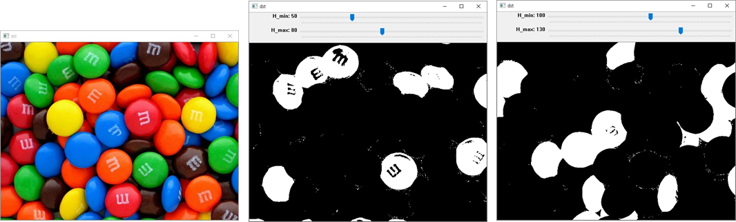 dst = cv2.inRange(src_hsv, (hmin, 150, 0), (hmax, 255, 255))
