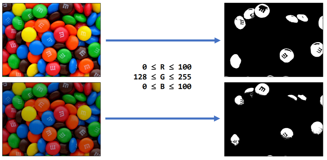 범위 안에 들어가는 픽셀은 255, 나머지는 0으로 설정