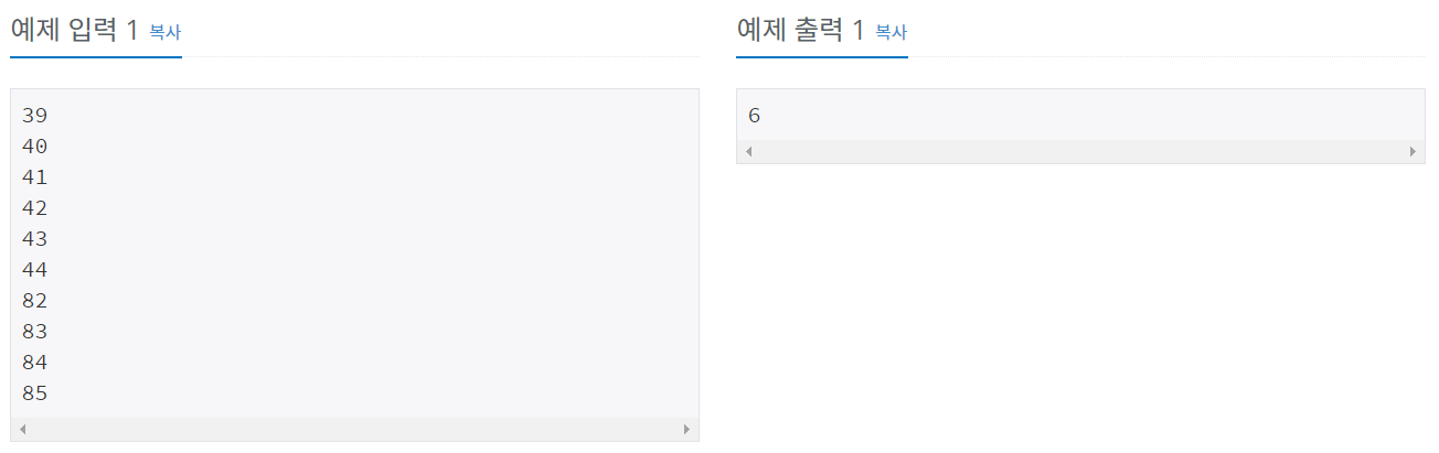 39, 40, 41, 42, 43, 44, 82, 83, 84, 85를 42로 나눈 나머지는 39, 40, 41, 0, 1, 2, 40, 41, 0, 1이다.