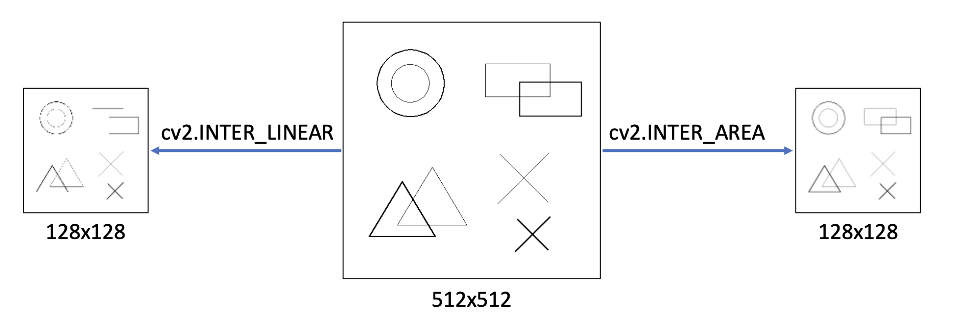 OpenCV의 cv2.resize() 함수에서는 cv2.INTER_AREA 플래그를 사용한다.
