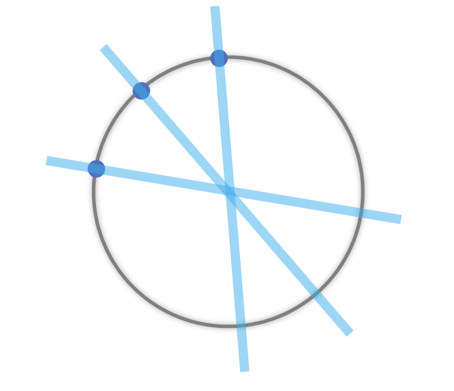 그래디언트 크기 방향으로 직선을 그리면서 값을 누적시킨다. 그래디언트 크기는 원의 중심을 향하므로 직선은 원의 중심에서 모이게 된다.