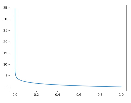 - 분류 문제에서 모델의 출력은 0에서 1 사이이므로 -log(y)의 함수는 위와 같다.