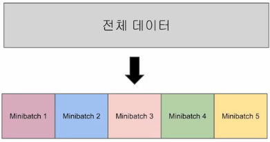 그리고 다음 미니 배치를 가져가서 경사 하강법을 수행하고 마지막 미니 배치까지 이를 반복한다. 이렇게 전체 데이터에 대한 학습이 1회 끝나면 1 에폭(Epoch)이 끝나게 된다.