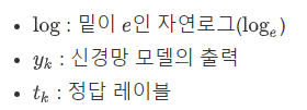위의 식에서 t값이 원-핫 인코딩된 벡터이고, 거기에다 모델의 출력 값에 자연로그를 취한 것이 곱해지는 형태이다.