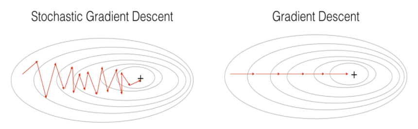 전체 학습 데이터 중 랜덤하게 선택된 하나의 데이터로 학습을 하기 때문에 확률적 이라 부른다.