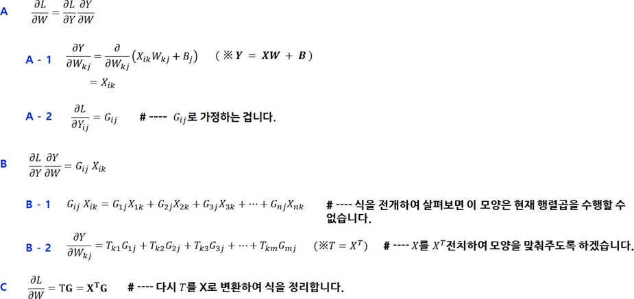 가중치의 손실 기울기는 $X^{T}G$ 로 정리할 수 있다.