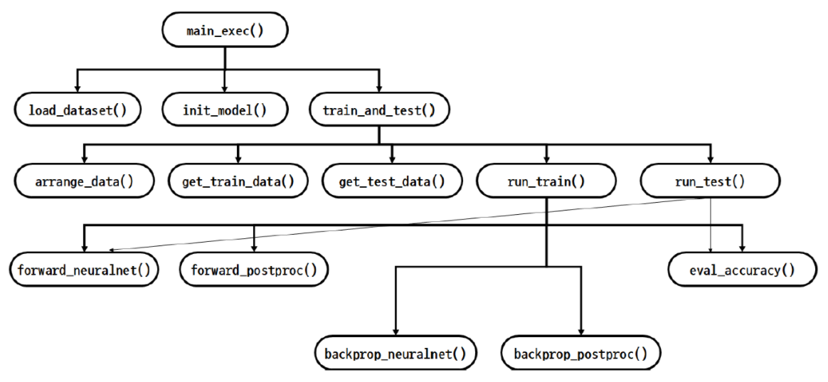 위의 설계도를 보면 train_and_test() 함수를 정의하기 위해 5개의 함수가 필요하다.