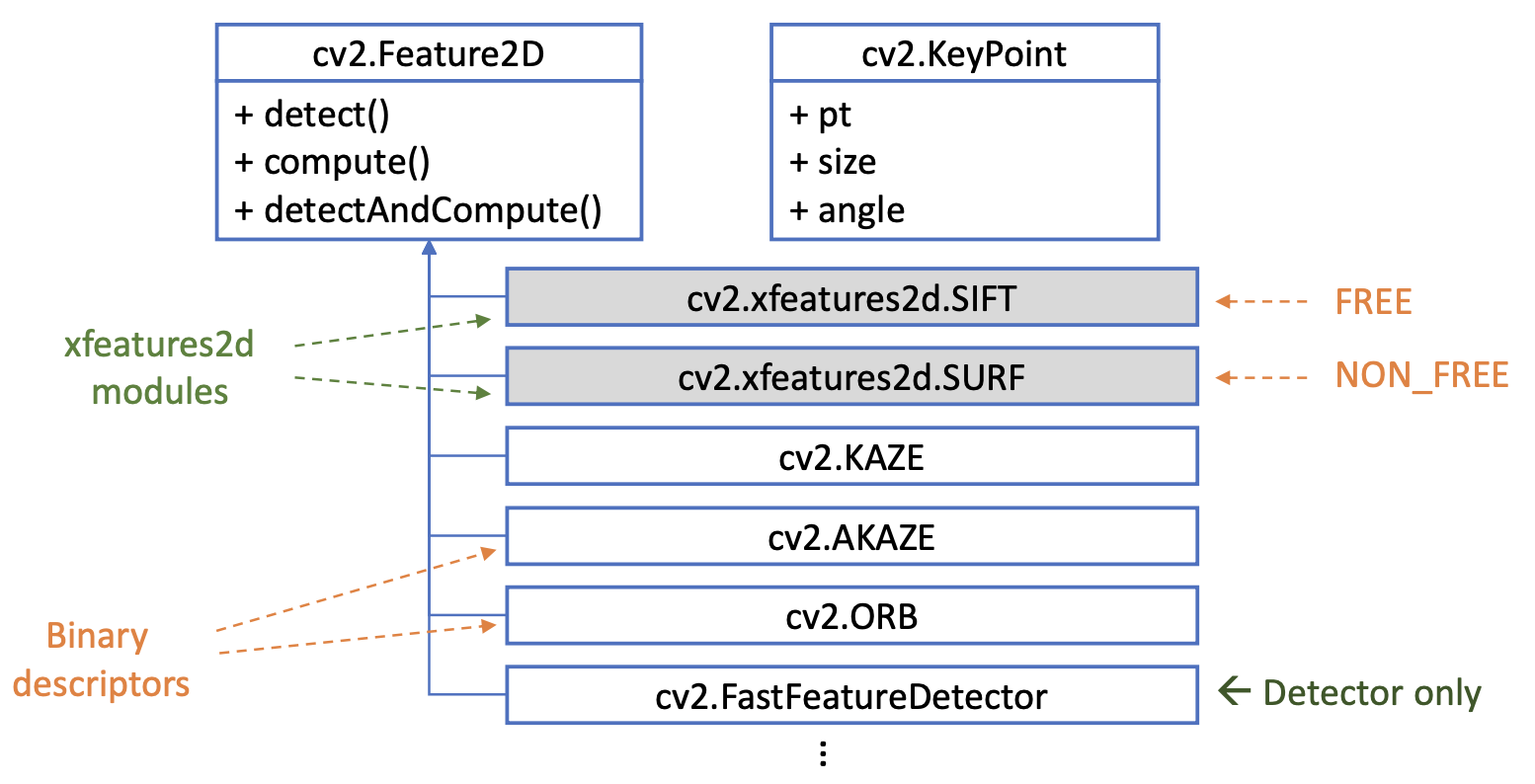 Feature2D 클래스에 자식 클래스 형태로 구현되어 있다.