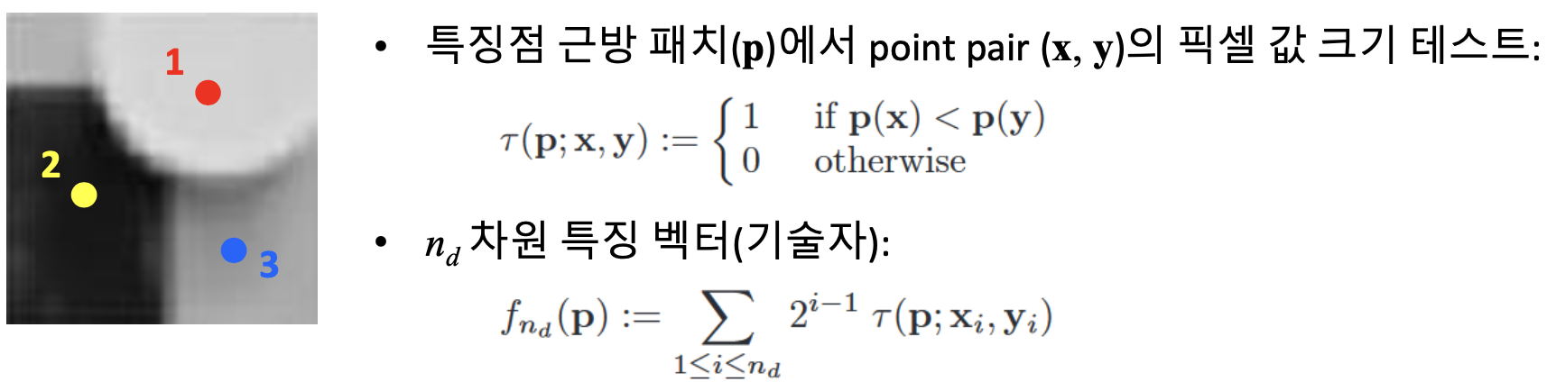 기술자는 특징벡터라고 불리며, 검출된 특징점 근방의 부분 영상을 표현하는 실수 또는 이진 벡터를 의미한다.