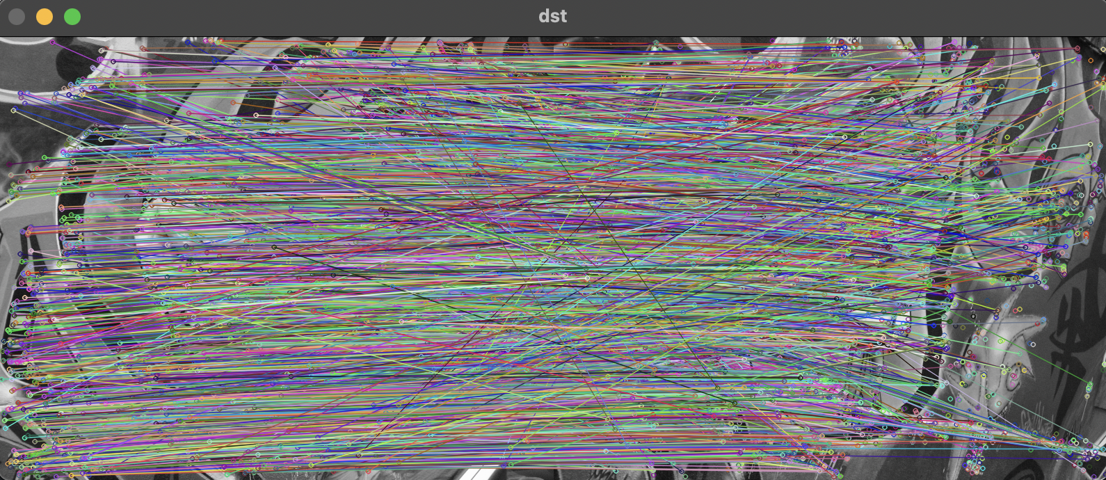 dst = cv2.drawMatches(src1, kp1, src2, kp2, matches, None)