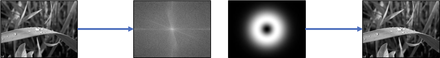 영상에서 주파수 값을 추출하는 FFT를 거쳐서 추출한 값과 설정한 관심영역을 곱하는 IFFT를 통해 주파수 필터링이 작용한다.