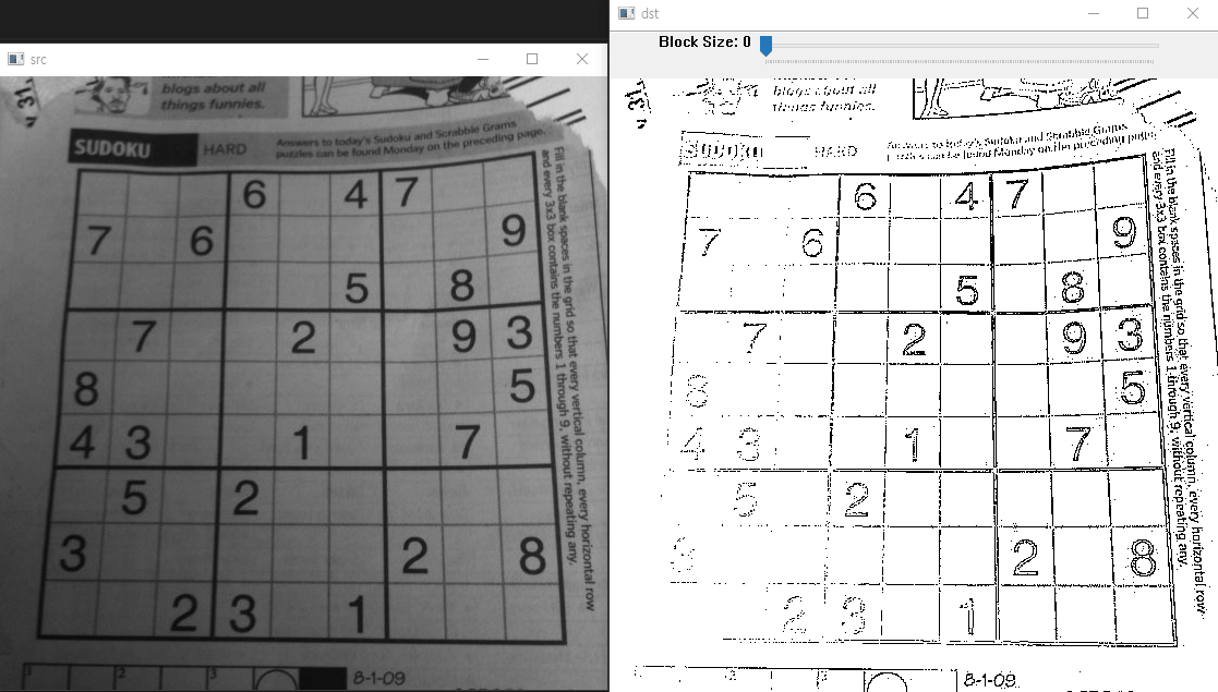 dst = cv2.adaptiveThreshold(src, 255, cv2.ADAPTIVE_THRESH_GAUSSIAN_C,