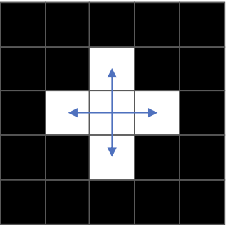 4-이웃 연결 관계는 어떤 객체가 연결되어 있을 때 두 개 픽셀이 상하좌우 관계로 연결되었을 때를 의미한다.